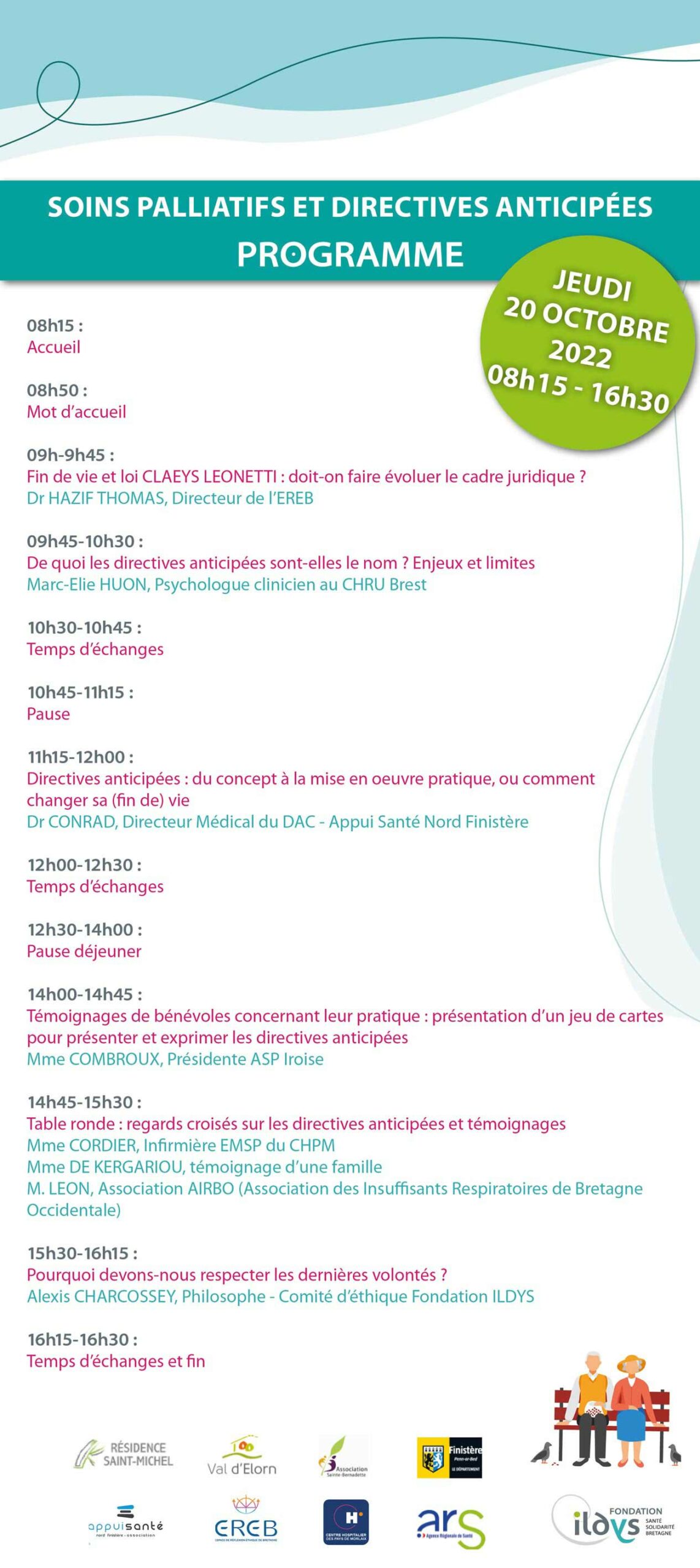 Venez participer à la 3ème rencontre des professionnels et bénévoles autour de la fin de vie. Une conférence spéciale soins palliatifs et directives anticipées, le jeudi 20 octobre 2022 de 8h15 à 16h30, à la salle du Vallon à Landivisiau.